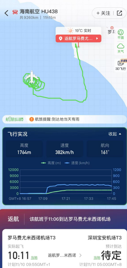 当今,该航班已于当地技术11月10日11:06(北京技术18:06)安全降落在罗马菲乌米奇诺机场,统共搭客均已有序下机,公司将妥善作念好搭客后续保险。