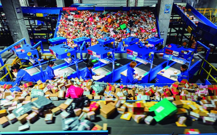 在浙江义乌,中通快递义乌转运中心在“双11”前完成了进一步产能升级,新增一套双层三区交叉带、两套翻板机以及四条终局大件分拣拓荒,助力快递分拣功课进一步提效。咫尺,义乌转运中心日均处理包裹近1200万件,中心遐想峰值产能可达日均2500万件。