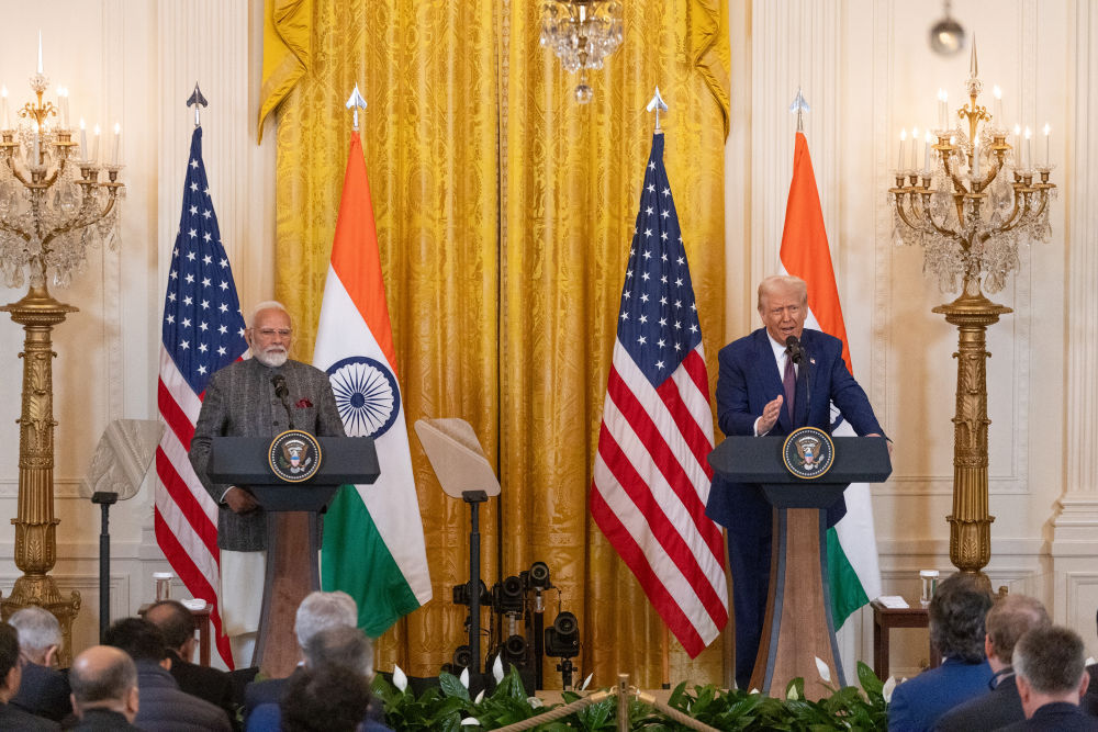 2月13日,好意思国总统特朗普(右)与到访的印度总理莫迪在华盛顿白宫出席长入记者会。新华社记者胡友松摄